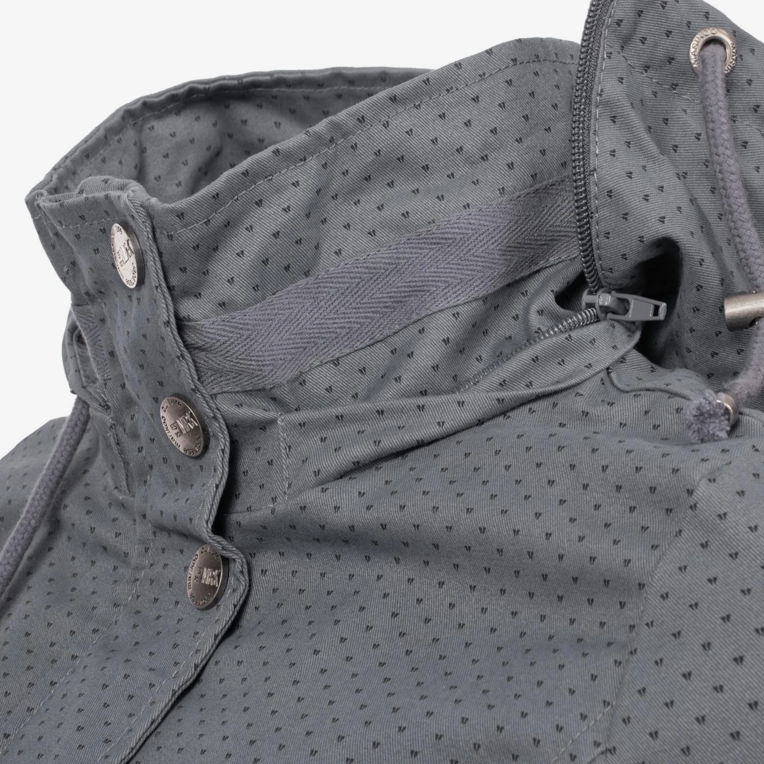 À poisCotonCapuche détachableCapuche avec col montantCapuche avec cordon de serrageDoublure contrastéeCoupe cintréeFermeture éclair masquéePoches latérales avec fermeture éclairCordon de serrage tailleCordon de serrage dans l’ourletMotifs all-overEtiquette patch / étiquette flagCoutures ton sur tonOeillets métalliquesLégèrement doubléFermeture à glissière