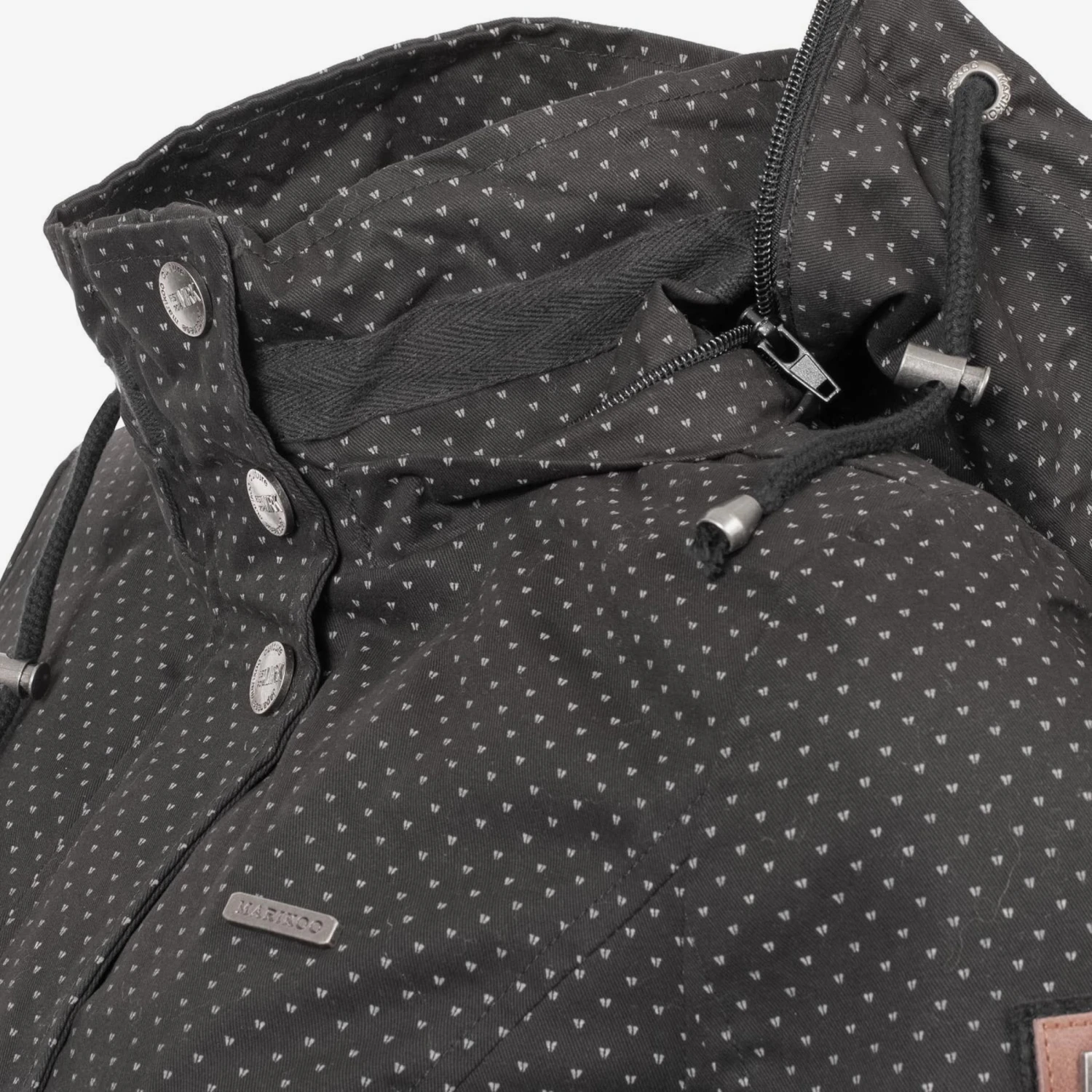 À poisCotonFermeture éclairOurlet / bord surpiquéBoutonnière avec boutons pressionCapuche avec cordon de serrageCoupe cintréePoche intérieurePoches latéralesLabel PlateCordon de serrage tailleMotifs all-overApplicationsEtiquette patch / étiquette flagOeillets métalliquesLégèrement doubléFermeture à glissière